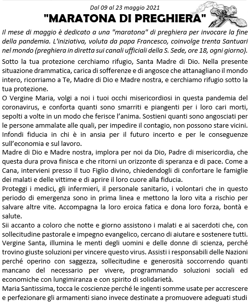 MARATONA DI PREGHIERA Unità Pastorale 09/05/2021 Editoriali Navigazione articoli Precedente Articolo precedente: E’ IL TEMPO DELLA COMUNITA’Successivo Articolo successivo: SINODO DIOCESANO